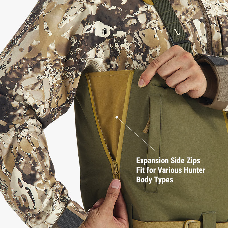 Instantly Ready Wear for Any Adventure: Experience quick and easy changes with the TiZIP® MasterSeal™ air-tight waterproof zipper. Featuring easy-to-remove kick tabs, this design allows for effortless on-and-off wear, so you can focus on your hunting adventure, not your gear.